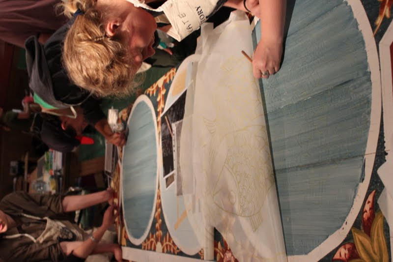 Ariel demonstrates how to trace the images to later be transferred onto the panel |